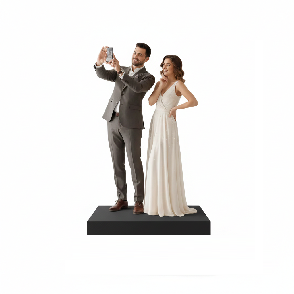 ⚠️ NOTA OPERATIVA: Nelle foto di coppia, le sovrapposizioni sono frequenti. Se l'immagine non mostra dettagli essenziali o richiede ricostruzioni strutturali per garantire la stabilità delle statue, è fondamentale aggiungere all'ordine il servizio "Ricostruzione Parti Mancanti". Questo assicura un risultato solido e privo di difetti estetici.